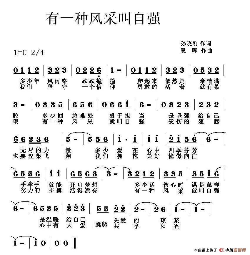 关于《有一种风采叫自强》曲谱的评论