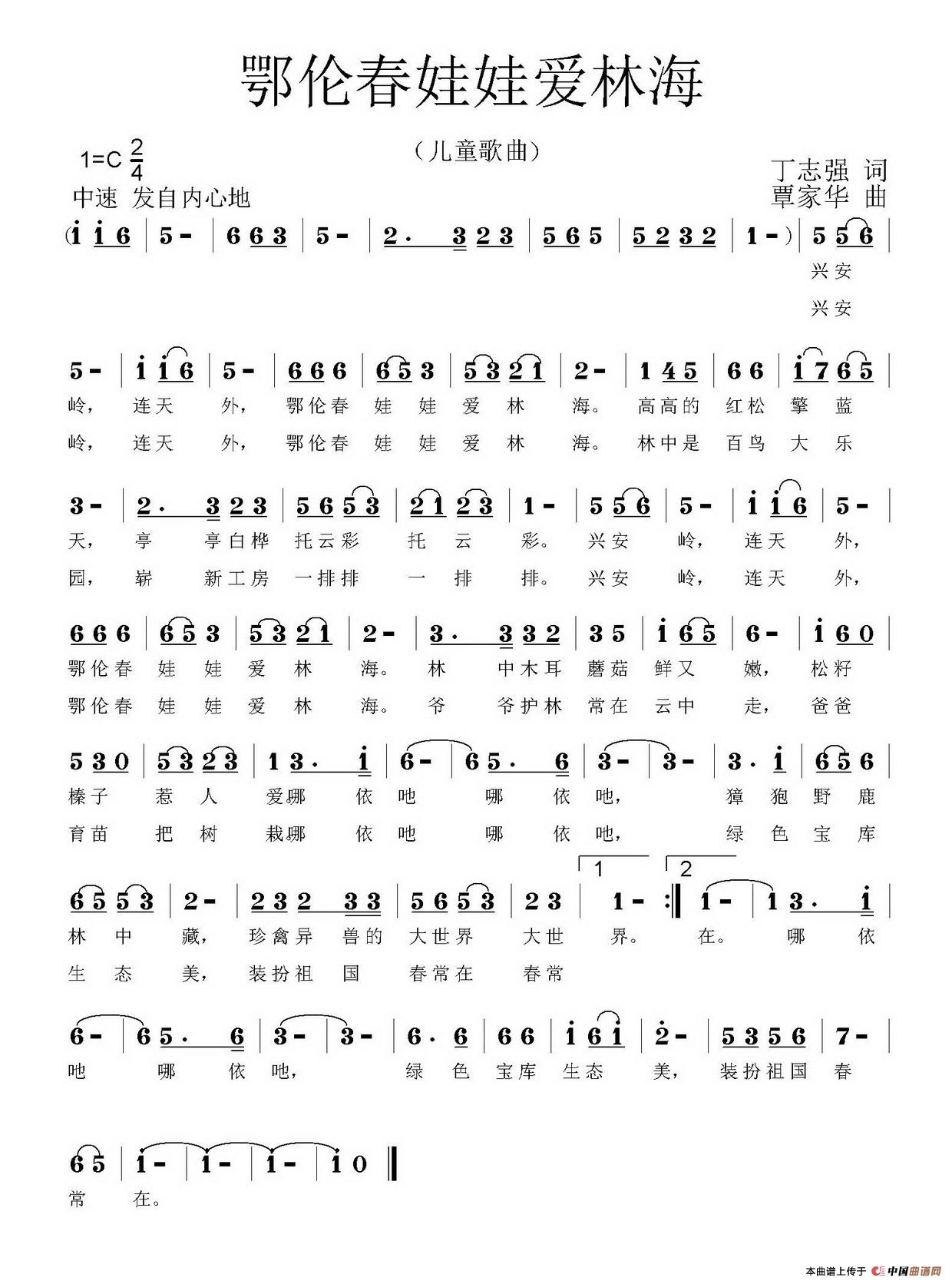 关于《鄂伦春娃娃爱林海》曲谱的评论