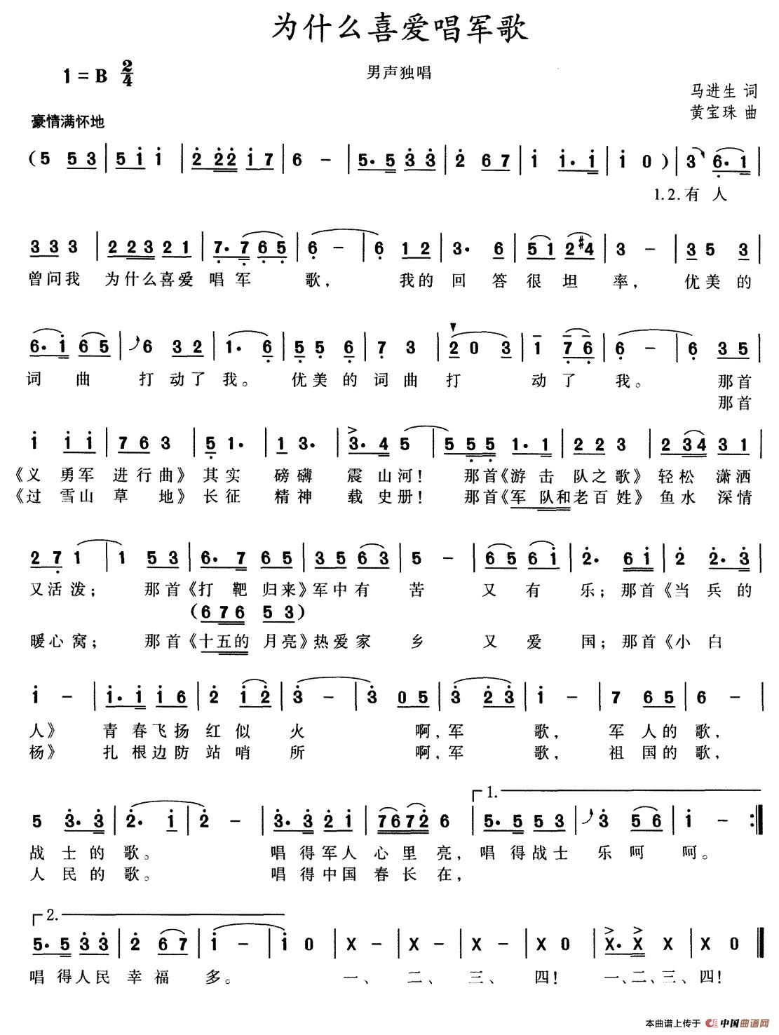 关于《为什么喜爱唱军歌》曲谱的评论