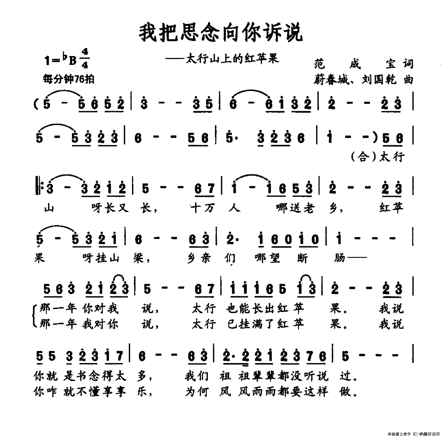 关于《我把思念向你诉说》曲谱的评论