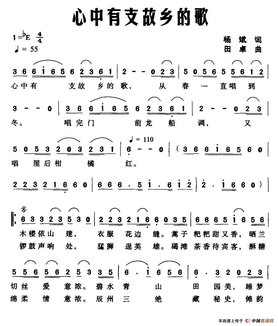 关于《心中有支故乡的歌》曲谱的评论