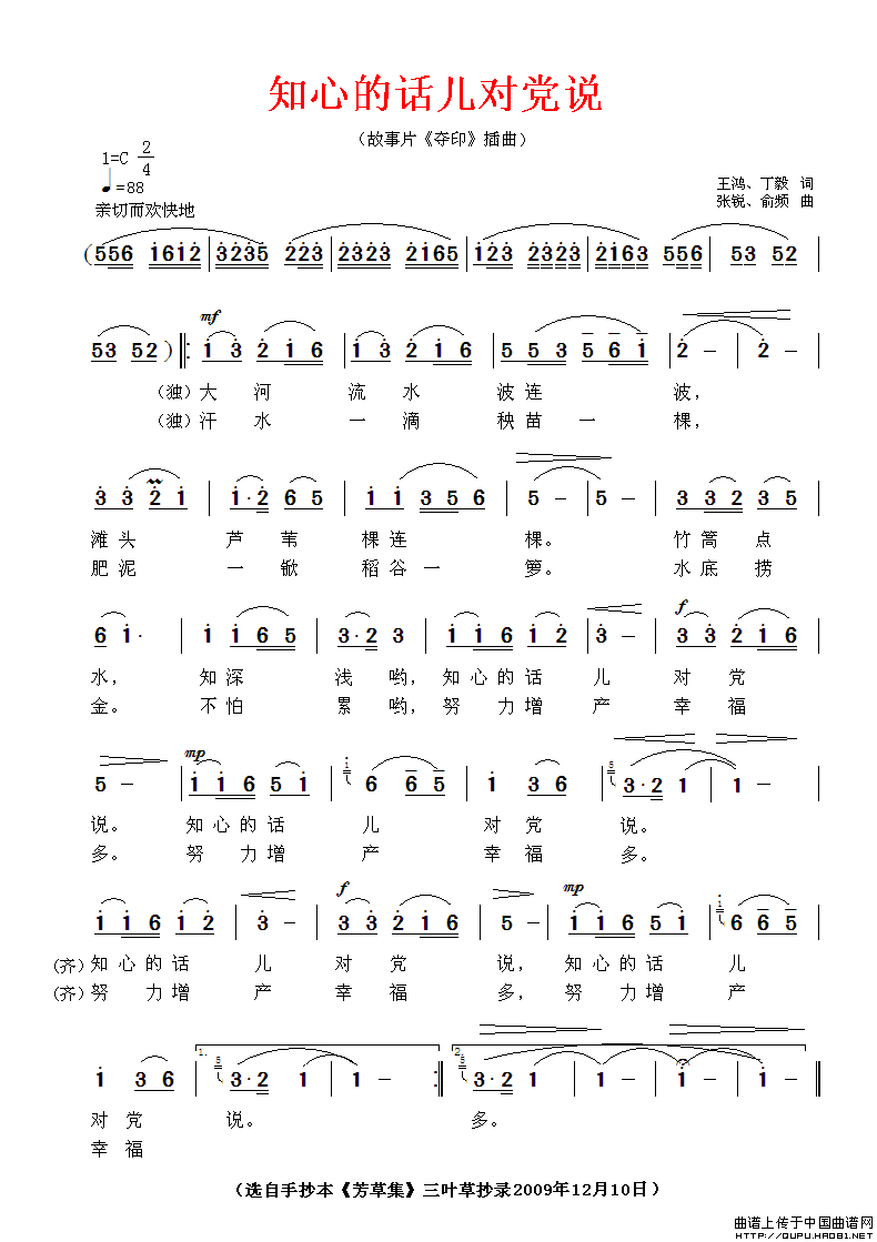 演唱(奏):吕文科、郭芙美 领唱 格式:简谱 来源:谱友三叶草 抄谱上传 上传:秋叶起舞