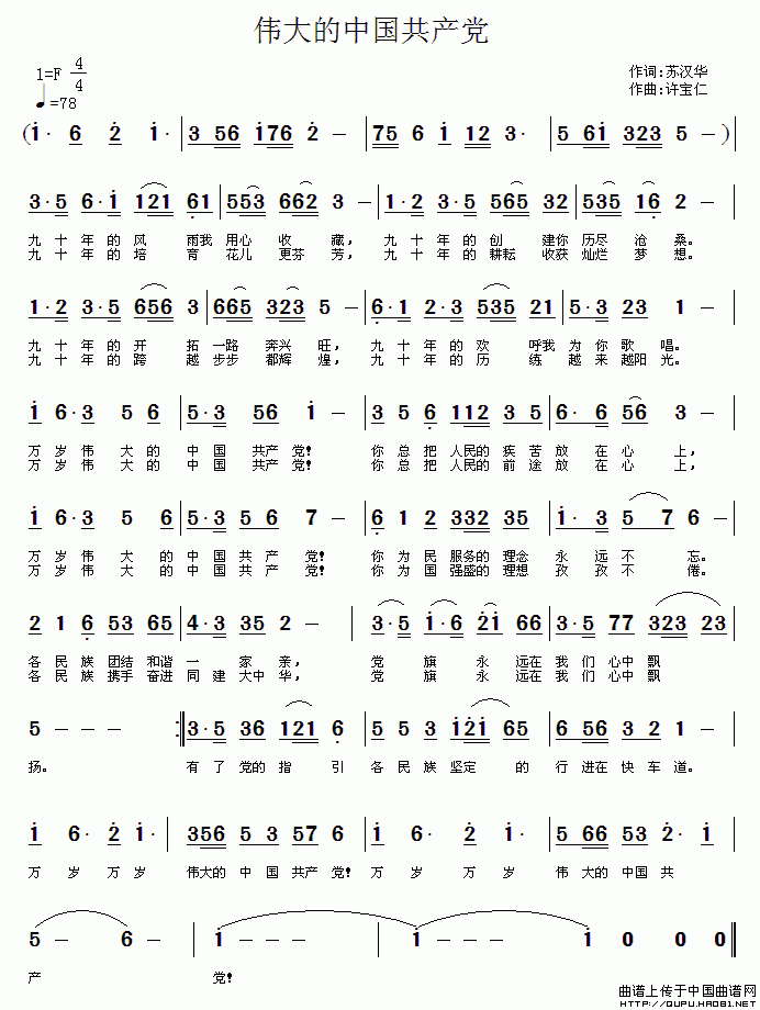 关于《伟大的中国共产党》曲谱的评论