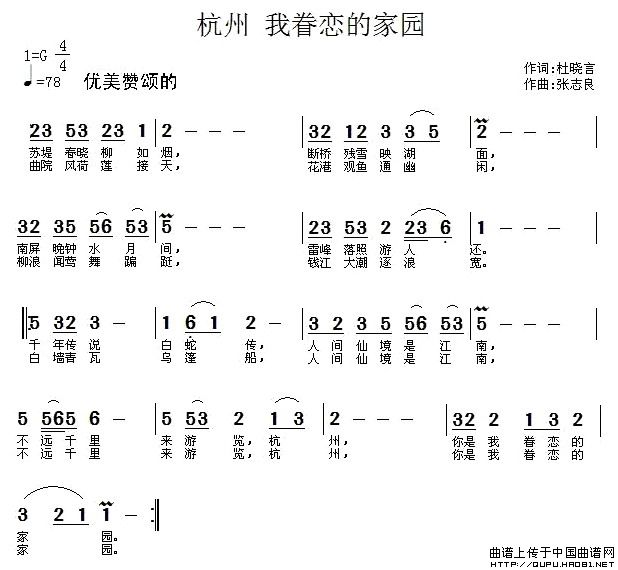 关于《杭州,我眷恋的家园》曲谱的评论