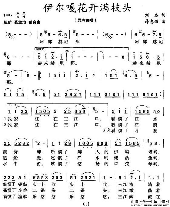 关于《伊尔嘎花开满枝头》曲谱的评论
