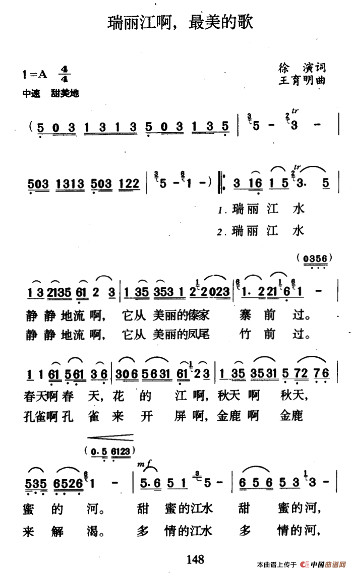 关于《瑞丽江啊,美丽的歌》曲谱的评论
