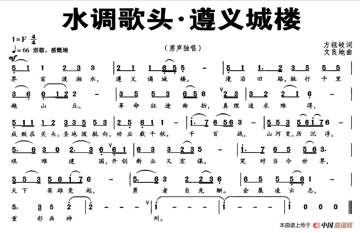 关于《水调歌头·遵义城头》曲谱的评论