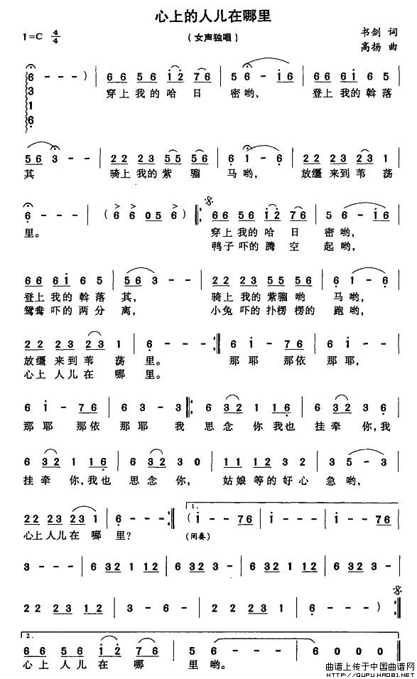 关于《心上的人儿在哪里》曲谱的评论