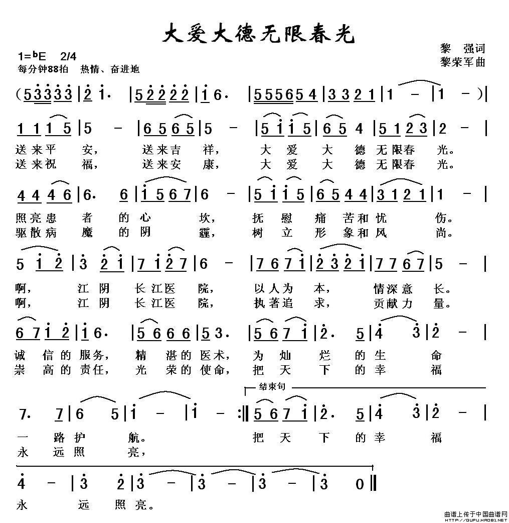 关于《大爱大德无限春光—江阴长江医院院歌》曲谱的评论