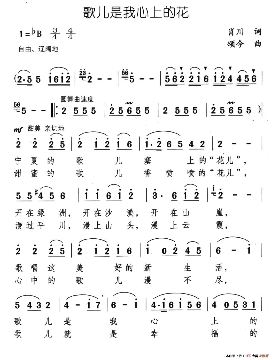 关于《歌儿是我心上的花》曲谱的评论