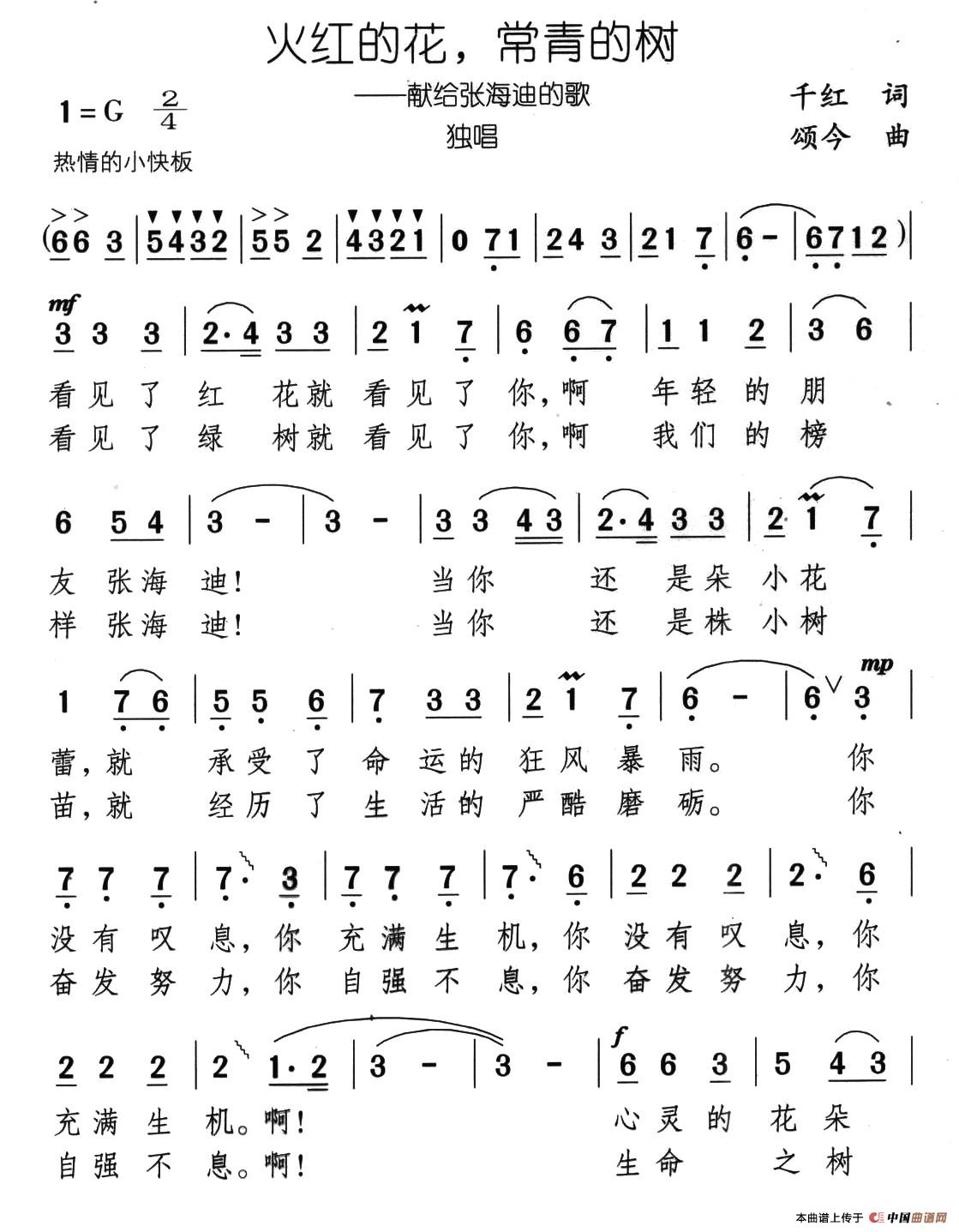 关于《火红的花,常青的树》曲谱的评论