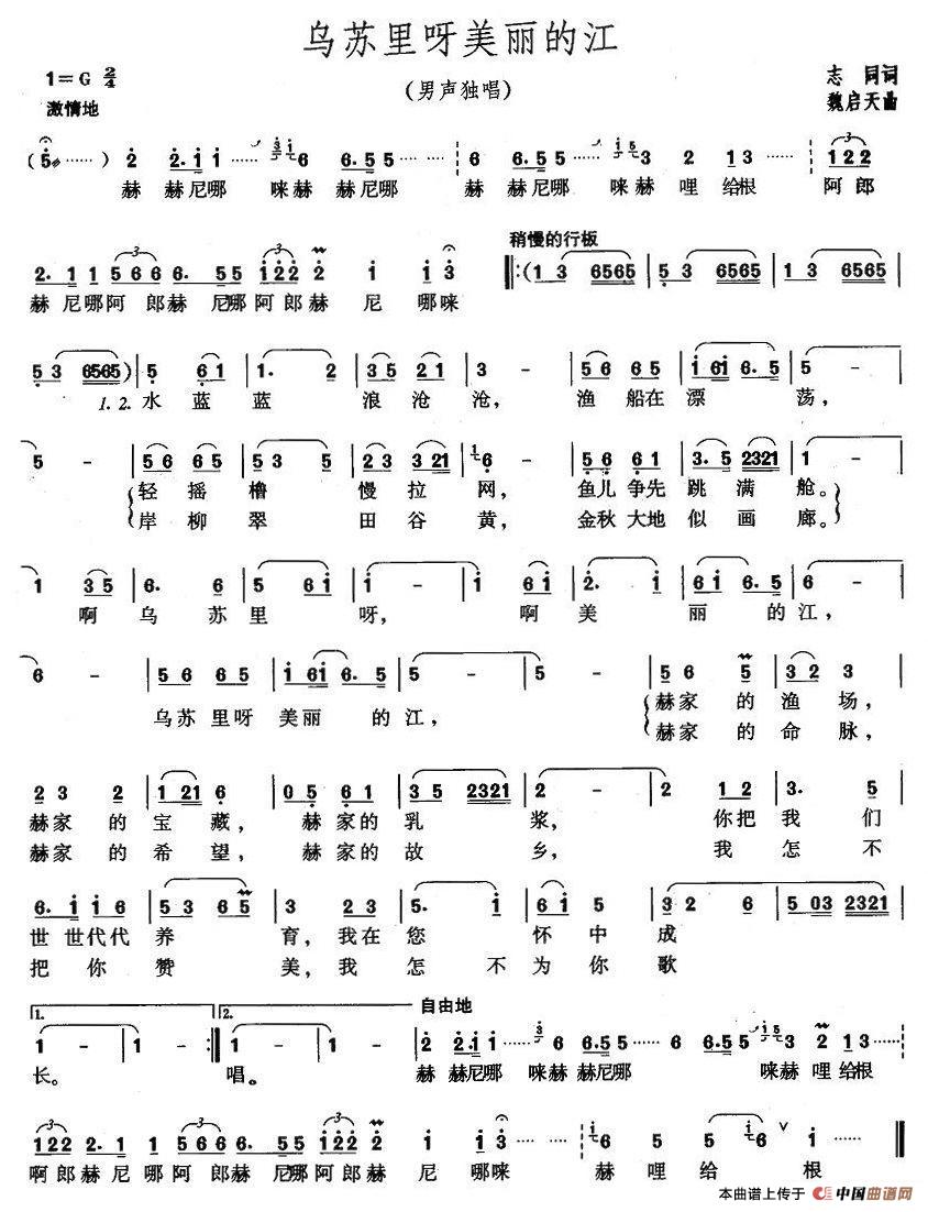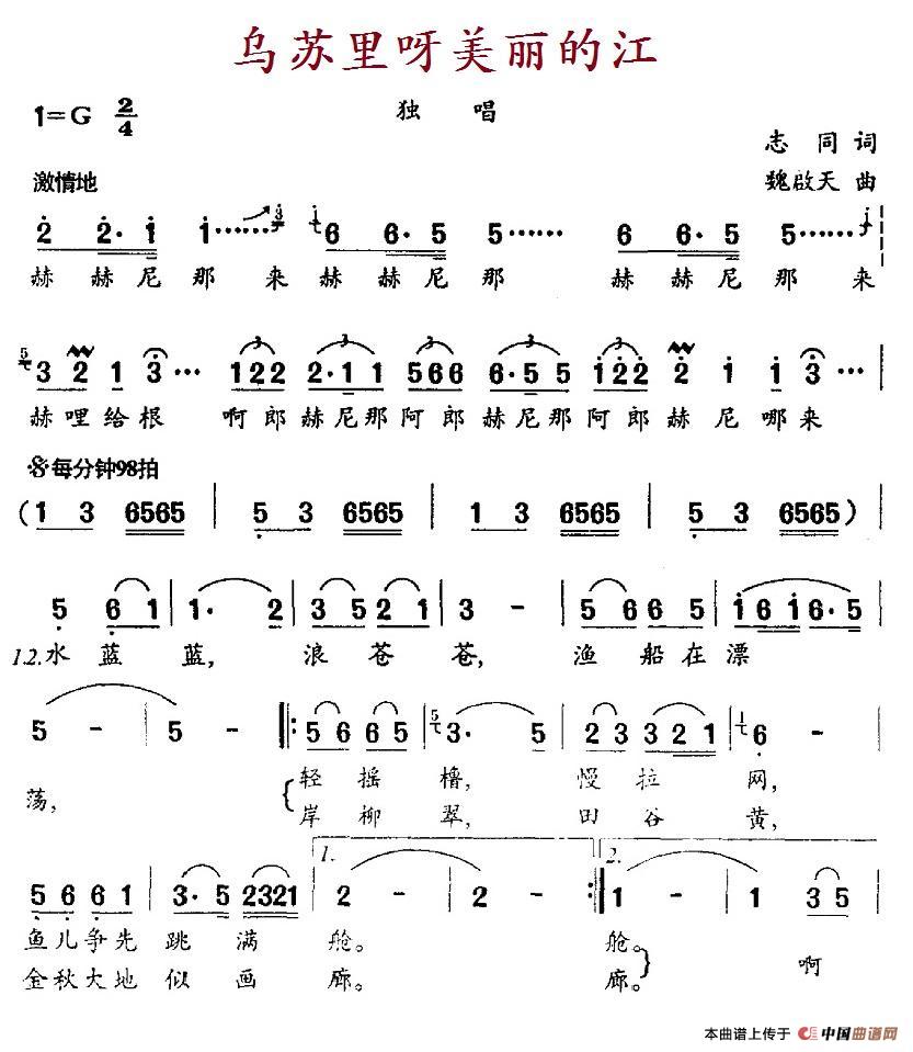 关于《乌苏里呀美丽的江》曲谱的评论