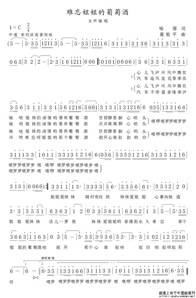 关于《难忘姐姐的葡萄酒》曲谱的评论