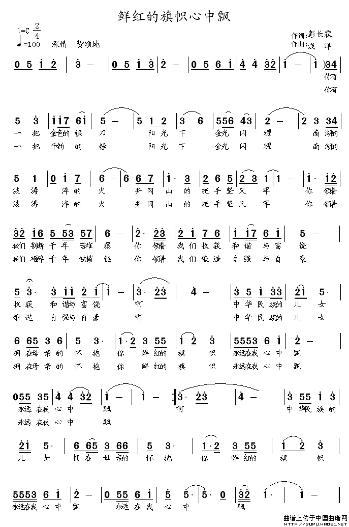 关于《鲜红的旗帜心中飘》曲谱的评论