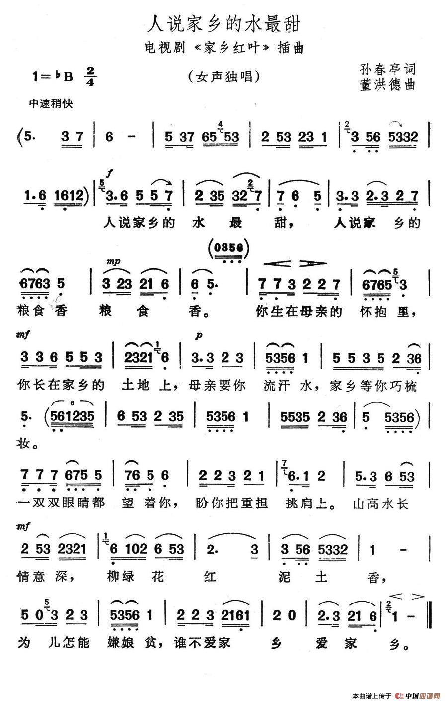 人说家乡的水最甜(电视剧《家乡红叶》插曲)