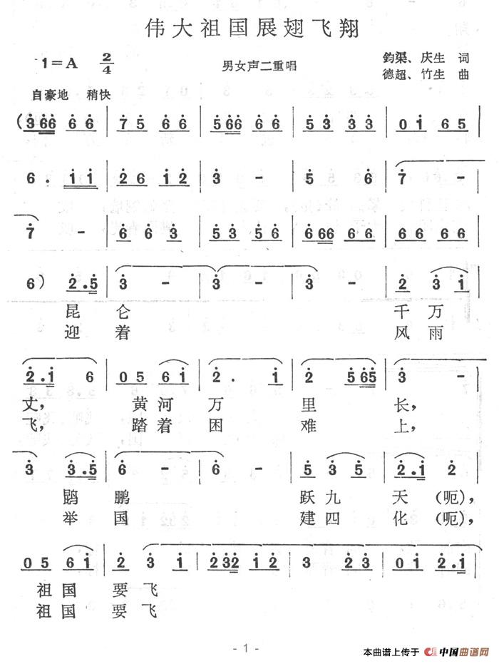 关于《伟大祖国展翅飞翔》曲谱的评论