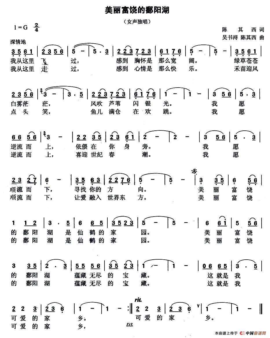 关于《美丽富饶的鄱阳湖》曲谱的评论