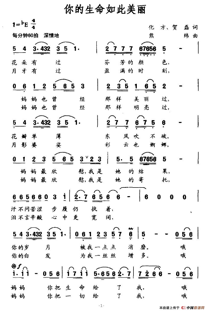 关于《你的生命如此美丽》曲谱的评论
