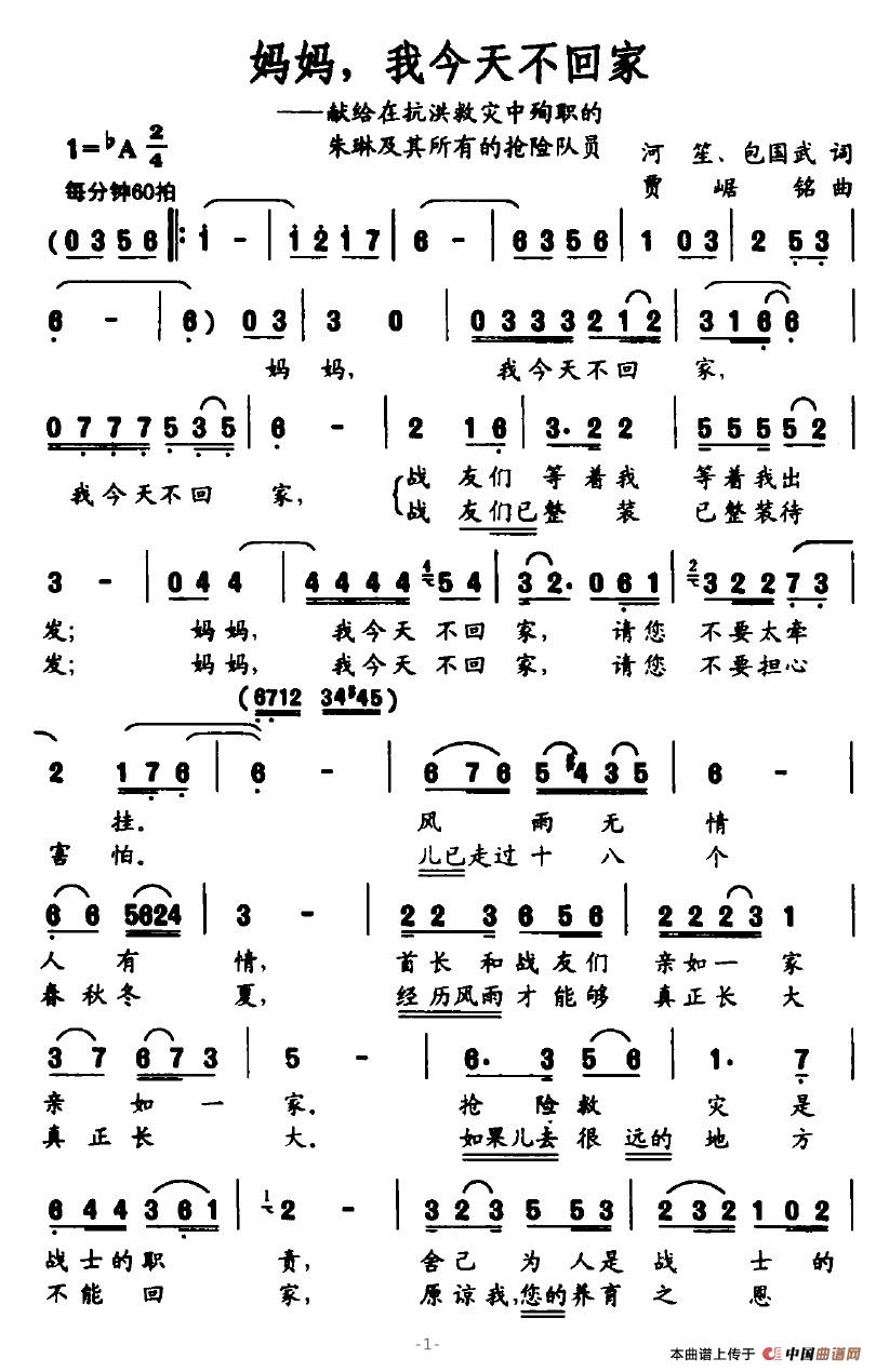 关于《妈妈,我今天不回家》曲谱的评论