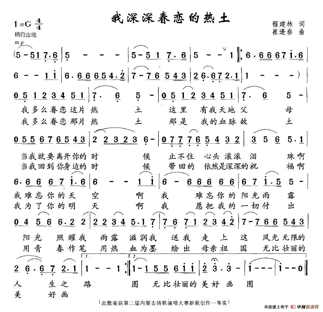 关于《我深深眷恋的热土》曲谱的评论