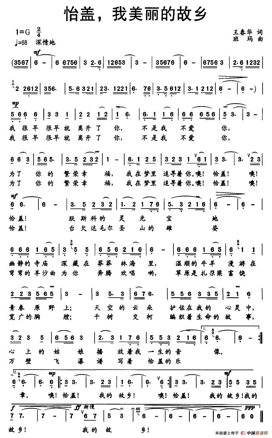 关于《怡盖,我美丽的故乡》曲谱的评论