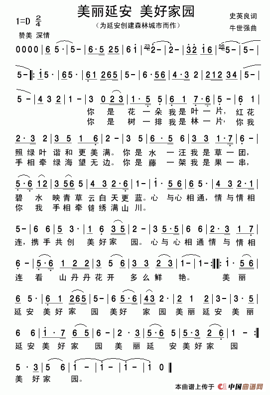关于《美丽延安 美好家园》曲谱的评论