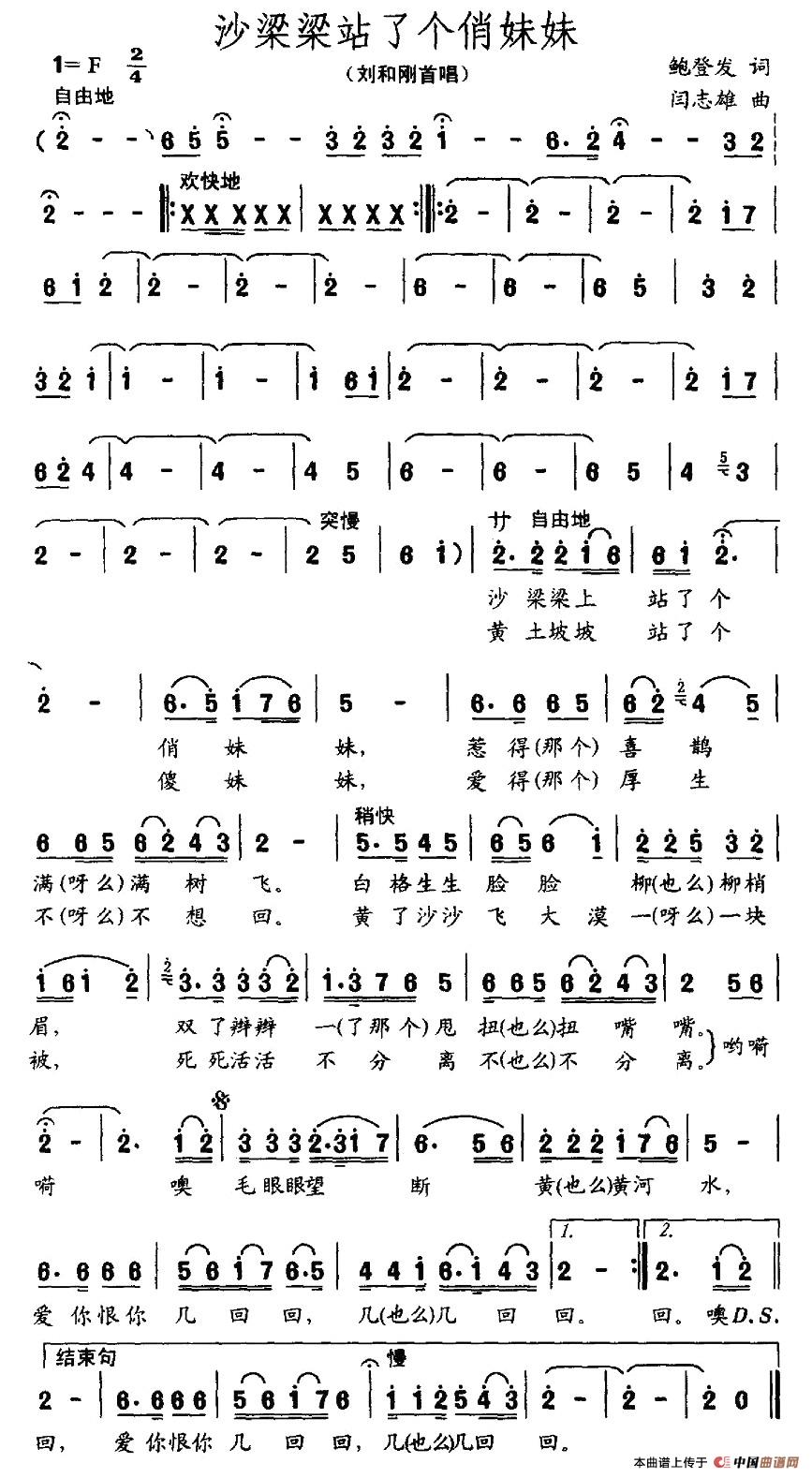 关于《沙梁梁站个俏妹妹》曲谱的评论