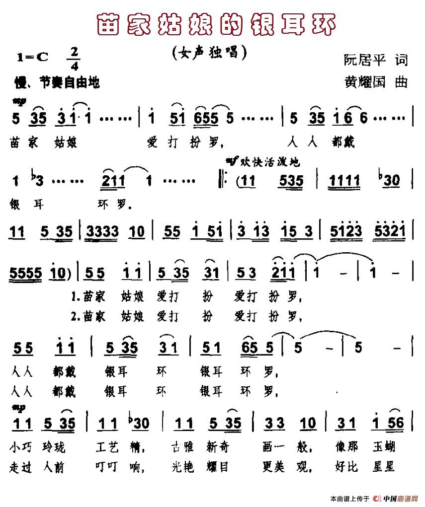 关于《苗家姑娘的银耳环》曲谱的评论