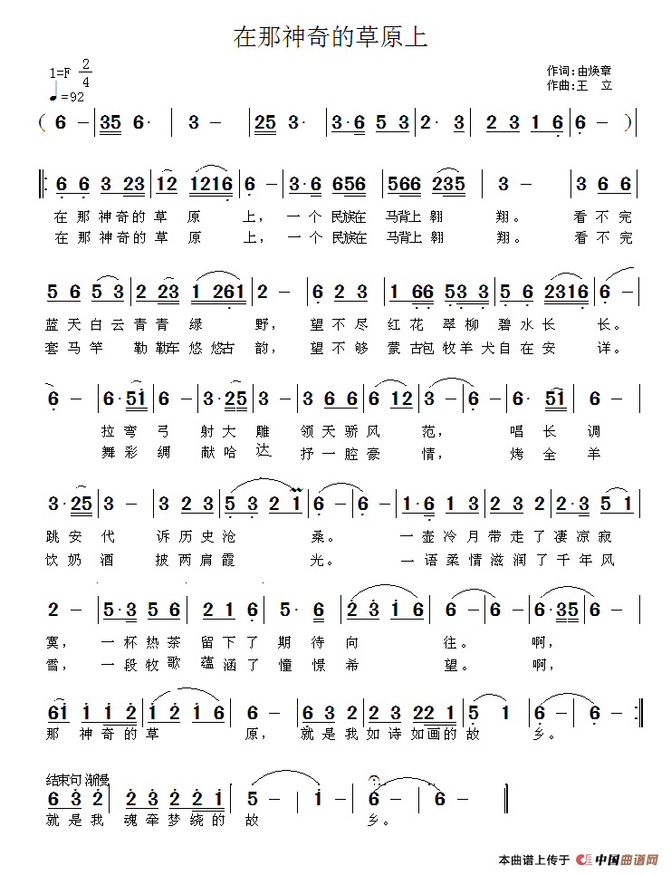 关于《在那神奇的草原上》曲谱的评论