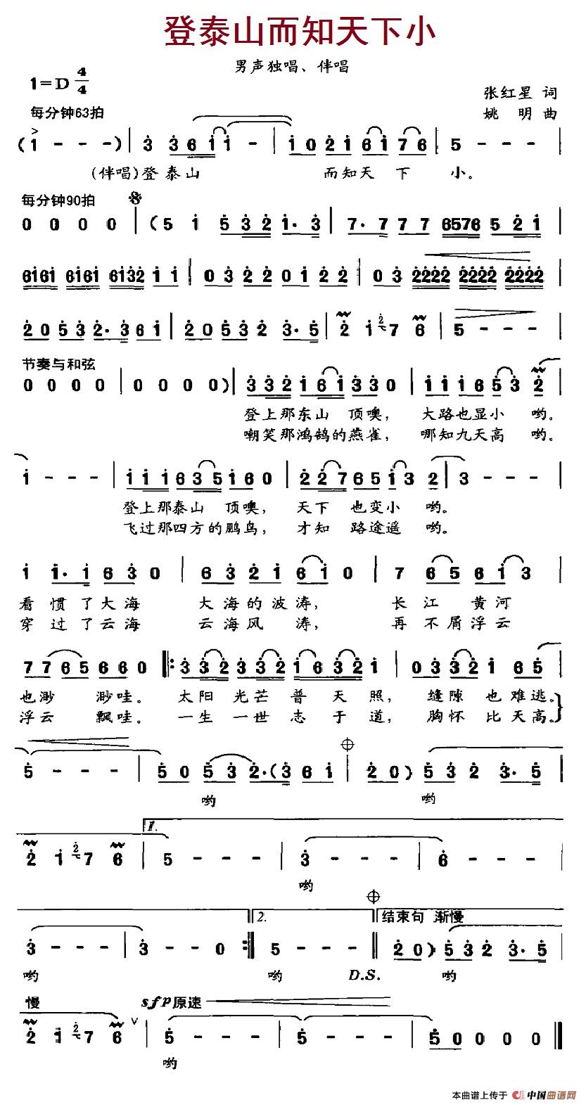 关于《登泰山而知天下小》曲谱的评论
