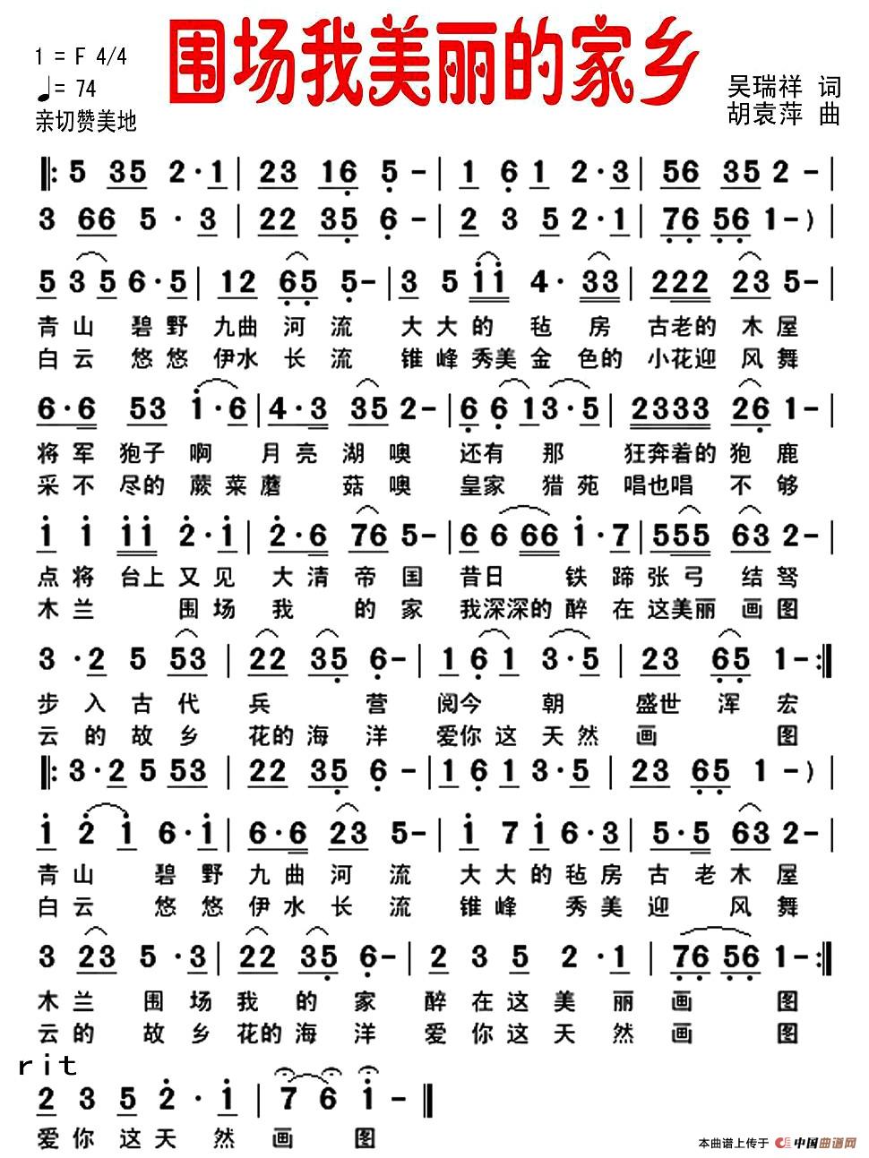 关于《围场我美丽的家乡》曲谱的评论
