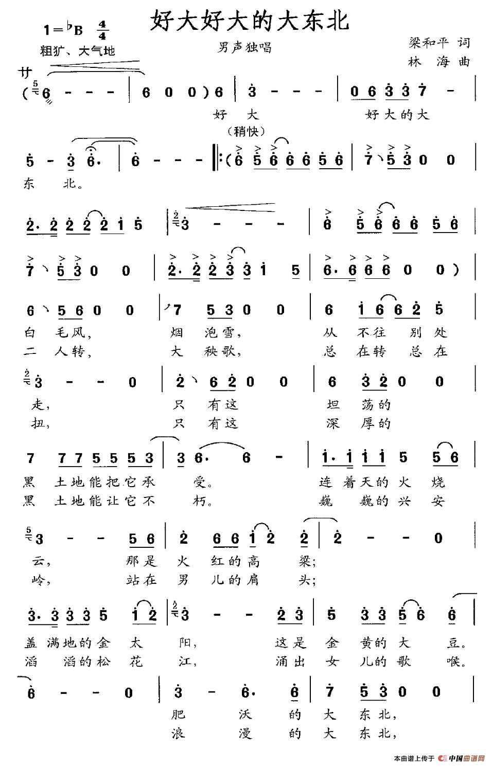 关于《好大好大的大东北》曲谱的评论
