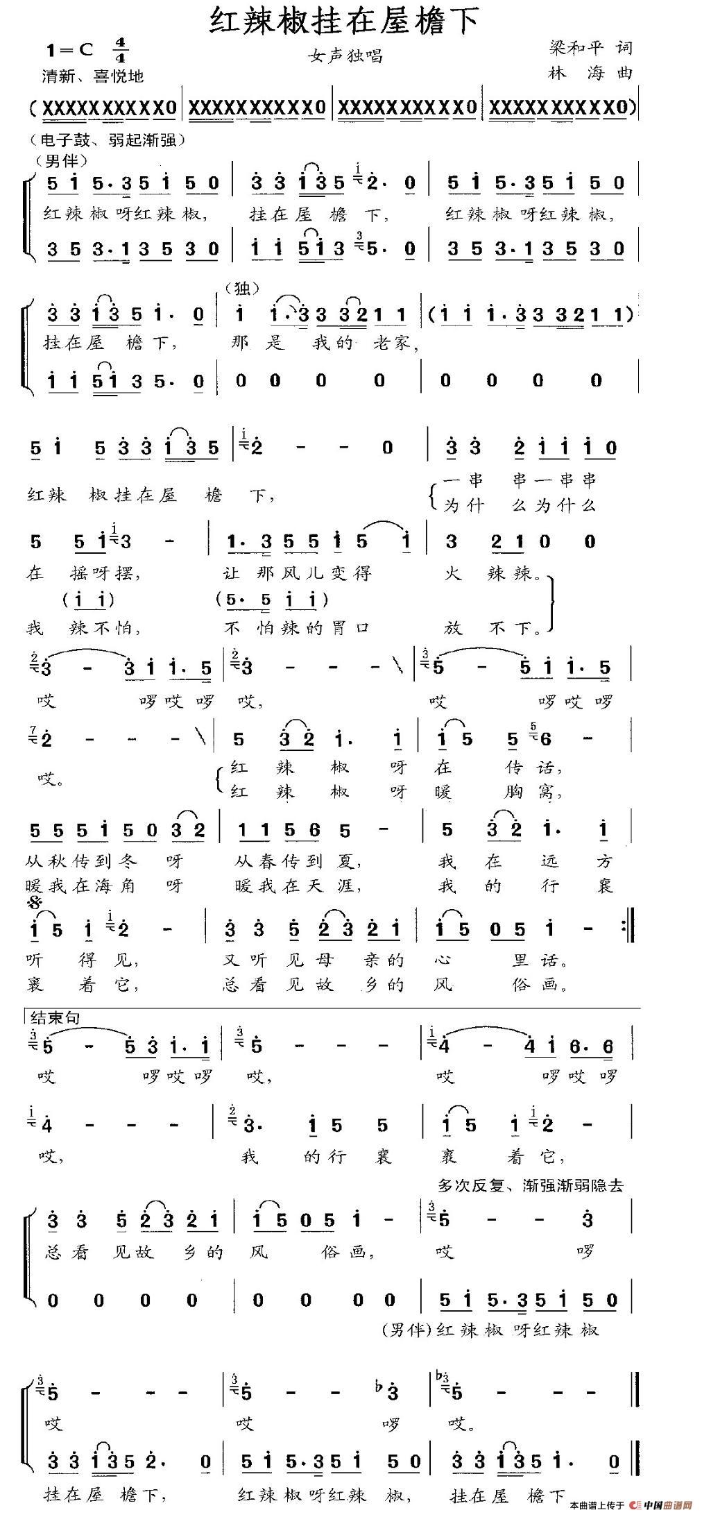 关于《红辣椒挂在屋檐下》曲谱的评论