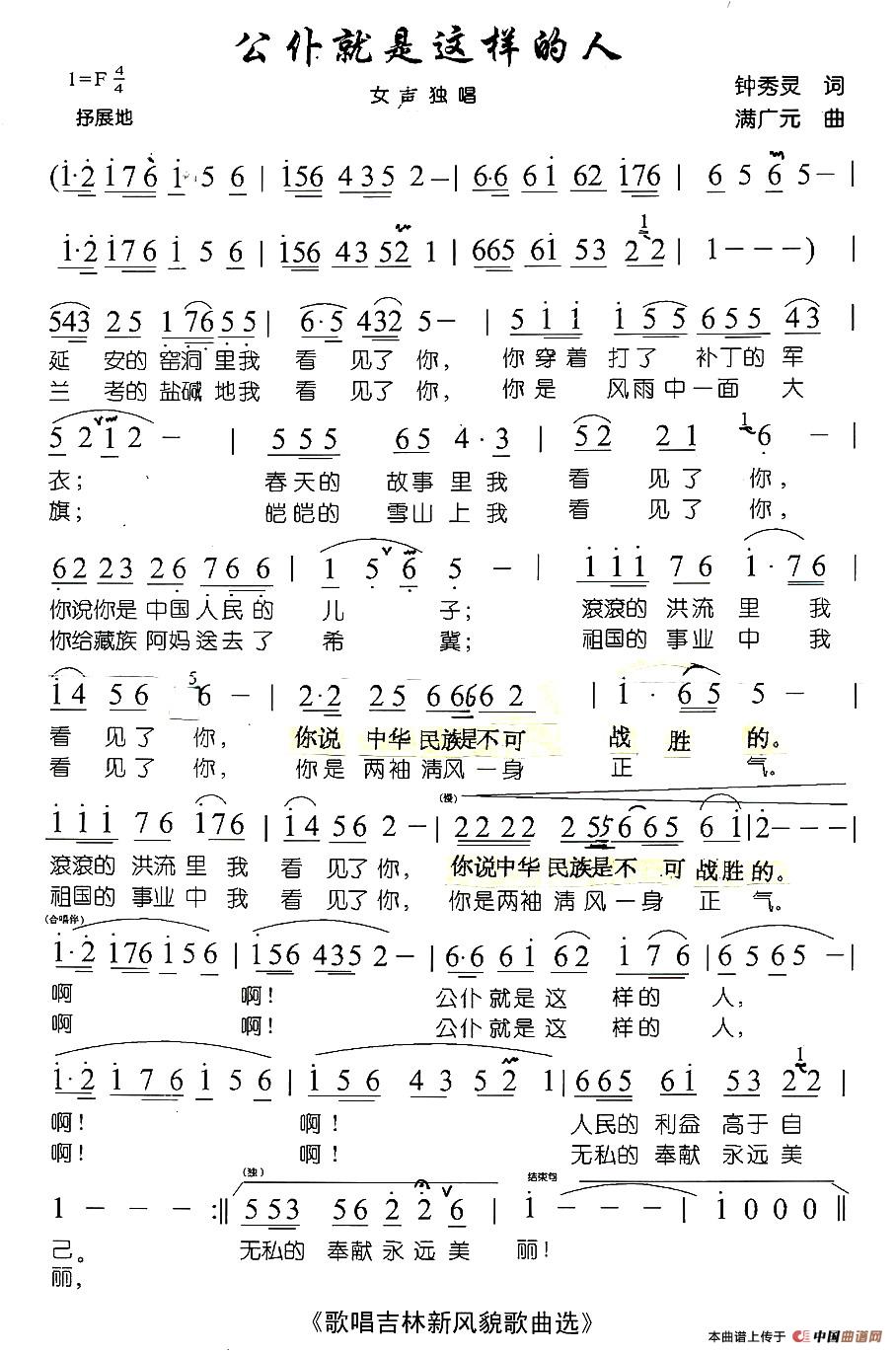 关于《公仆就是这样的人》曲谱的评论