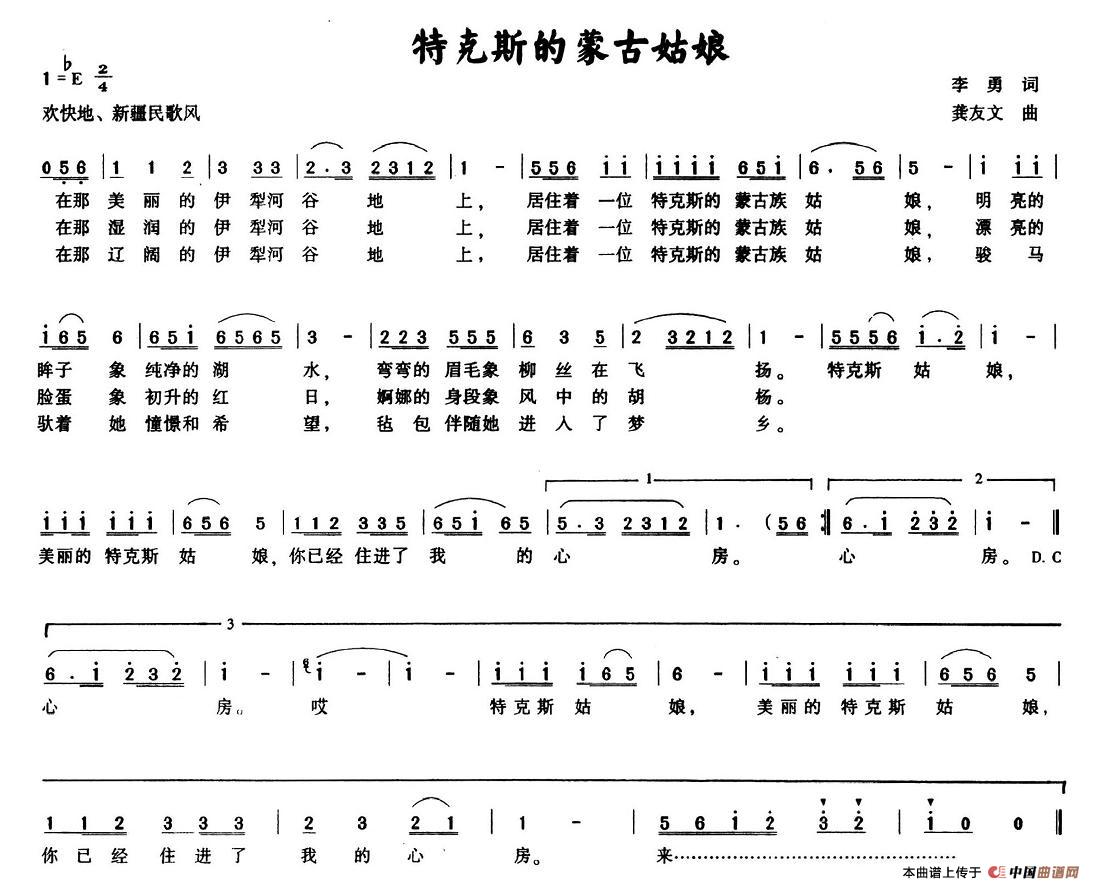 关于《特克斯的蒙古姑娘》曲谱的评论