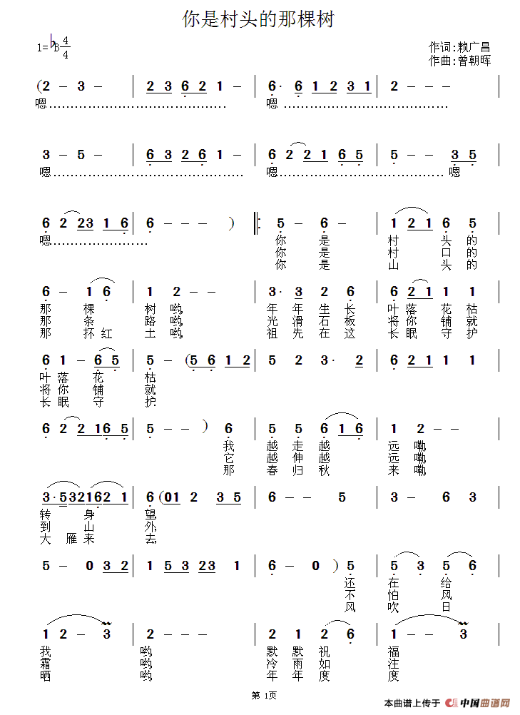 关于《你是村头的那棵树》曲谱的评论