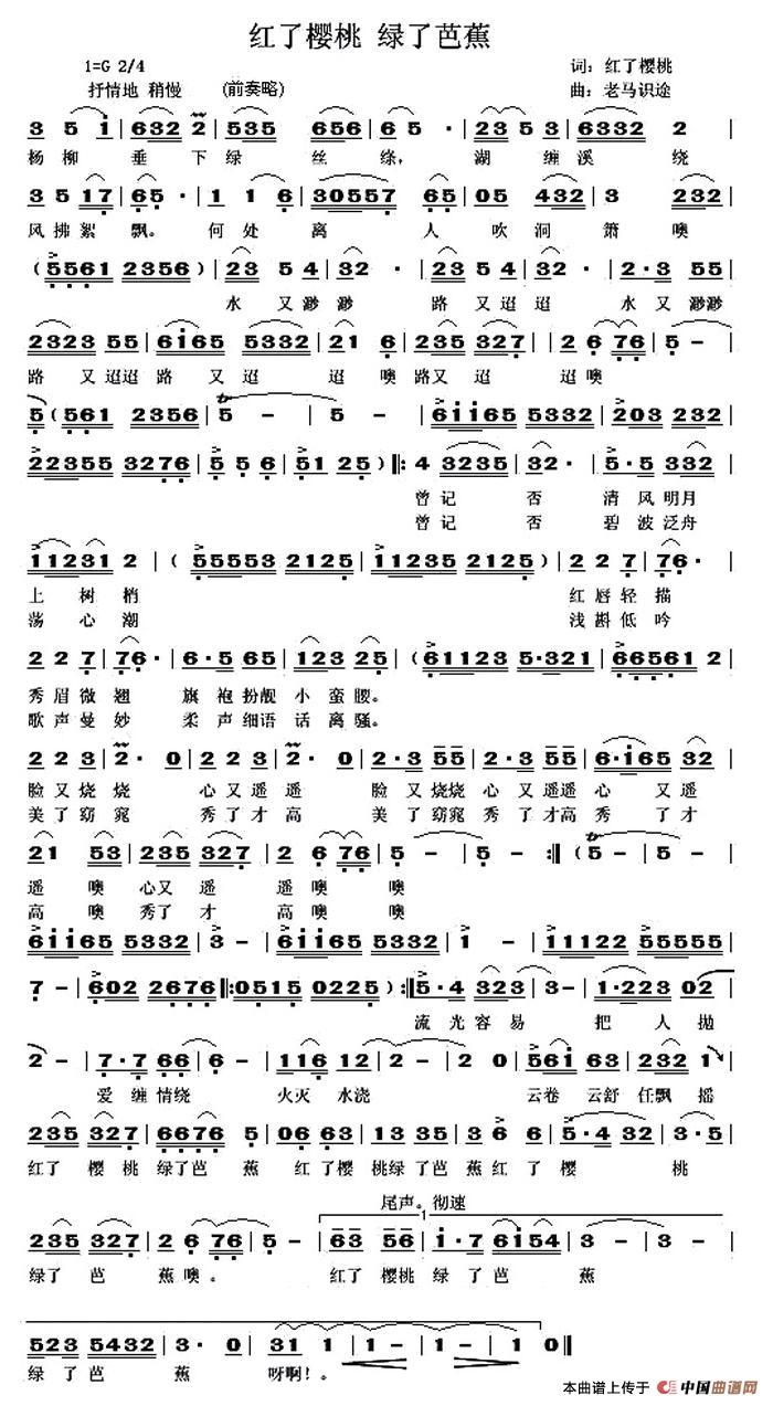 关于《红了樱桃 绿了芭蕉》曲谱的评论