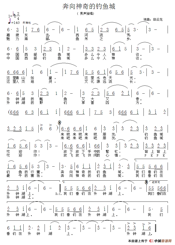 关于《奔向神奇的钓鱼城》曲谱的评论