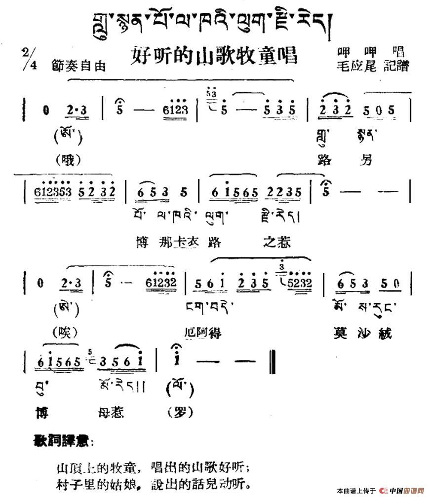 好听的山歌牧童唱(藏族民歌、藏文及音译版)