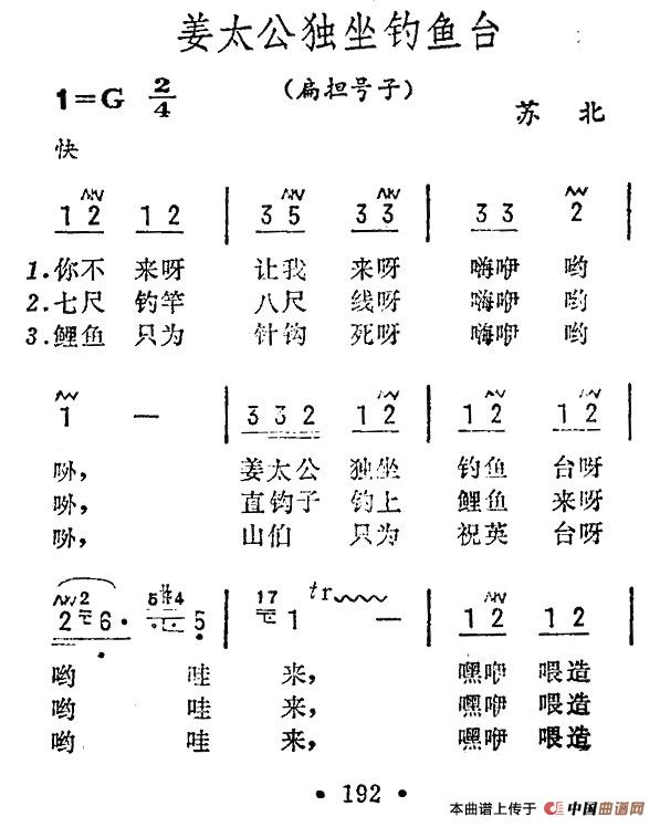 关于《姜太公独坐钓鱼台》曲谱的评论