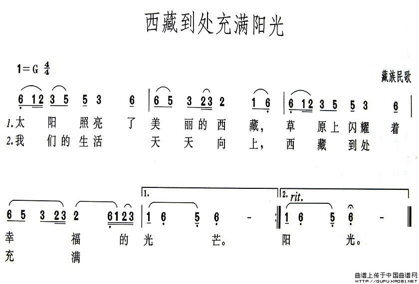 关于《西藏到处充满阳光》曲谱的评论
