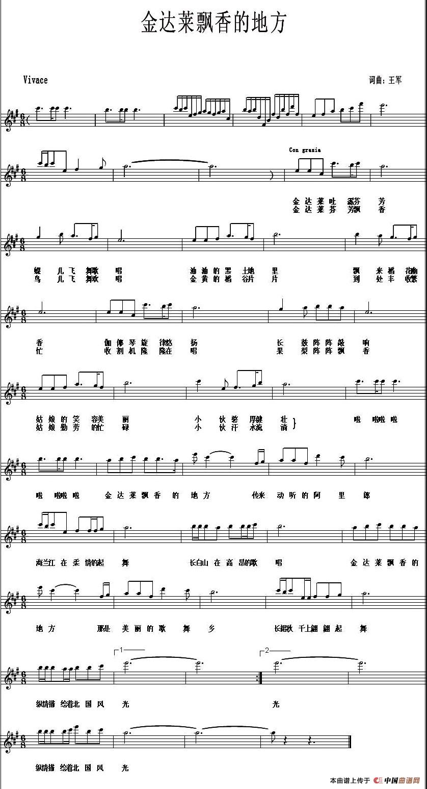 关于《金达莱飘香的地方》曲谱的评论
