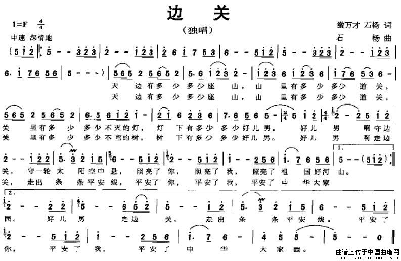 关于《边关》曲谱的评论