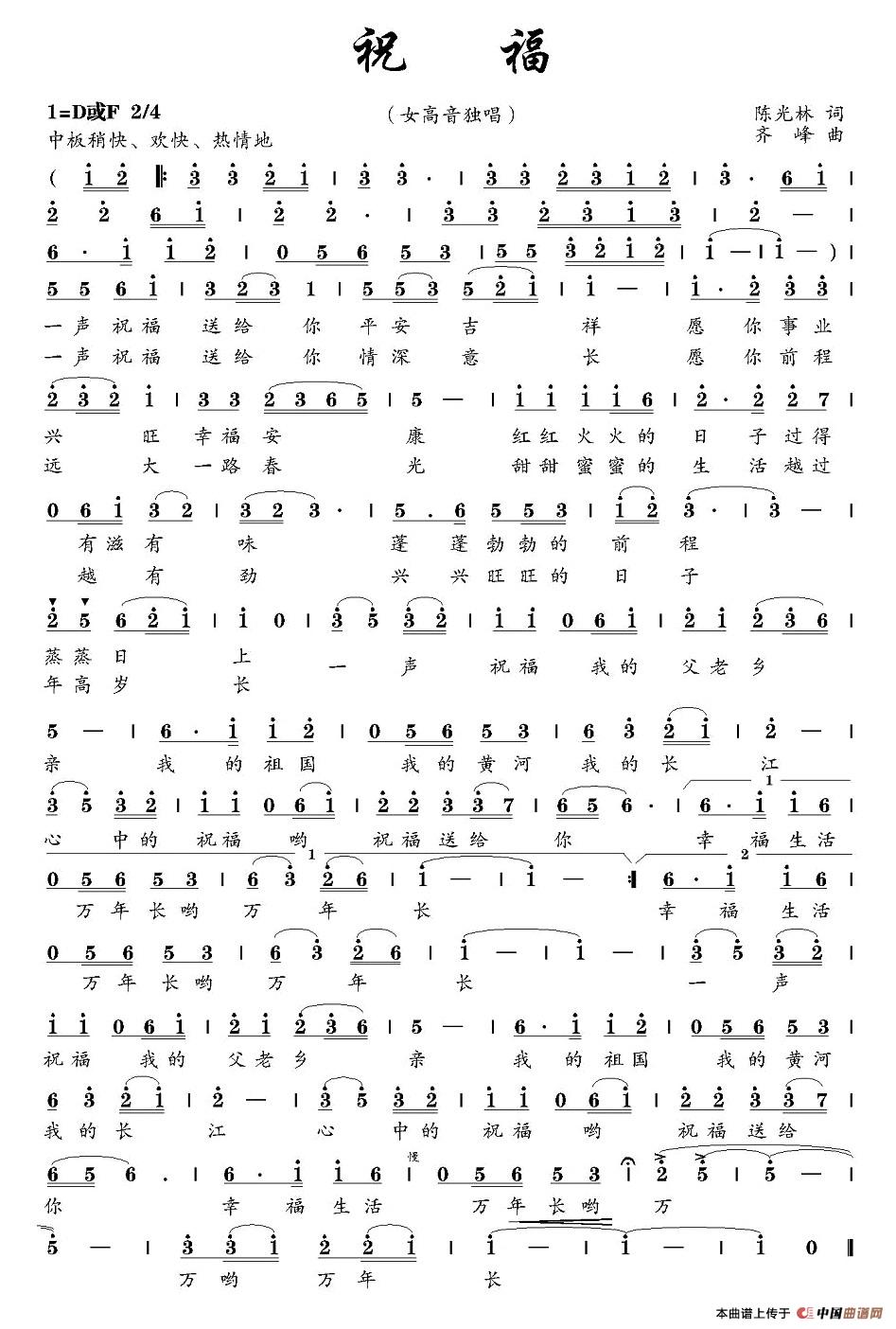 致谢:《中国曲谱网》衷心感谢作者老师馈赠原版歌谱!