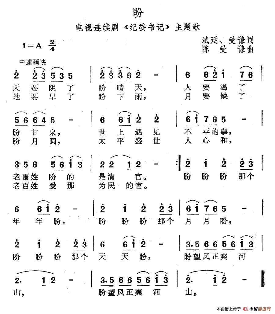 关于《盼》曲谱的评论