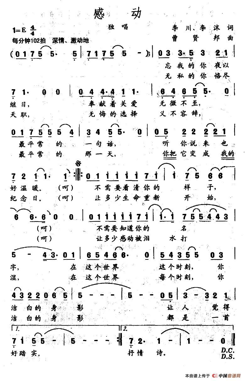 感动(李川词 曾贤邦曲)