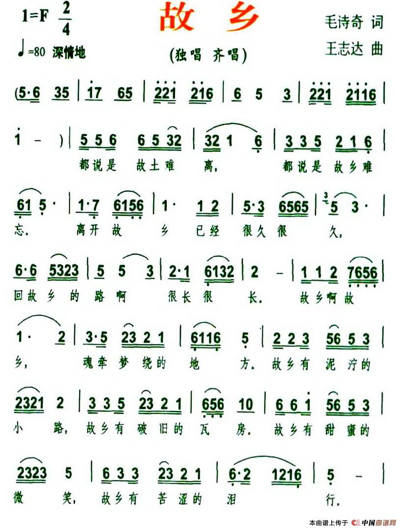 当前位置: 首页 民歌曲谱 二字以下 故乡(毛诗奇词 王志达曲)