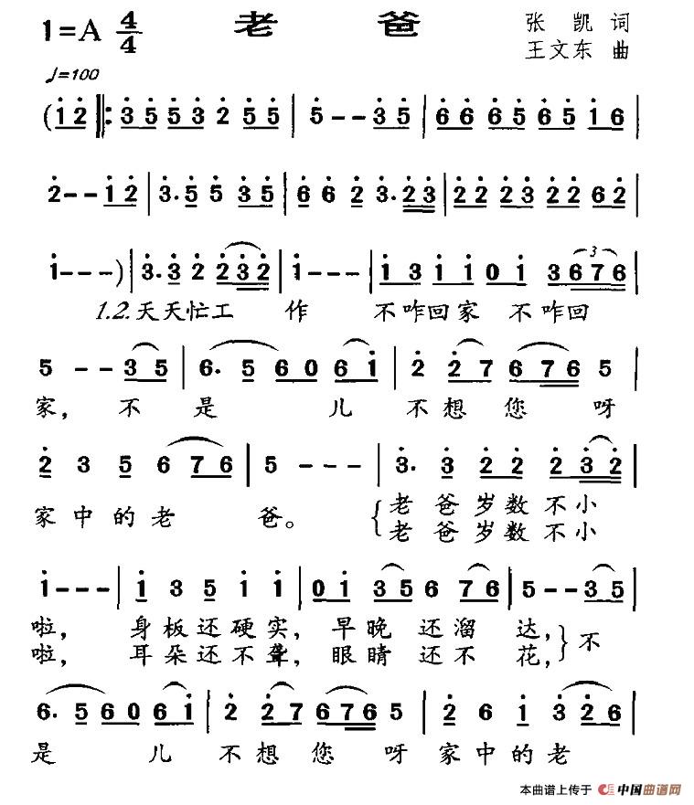 关于《老爸》曲谱的评论