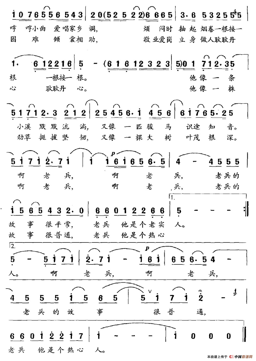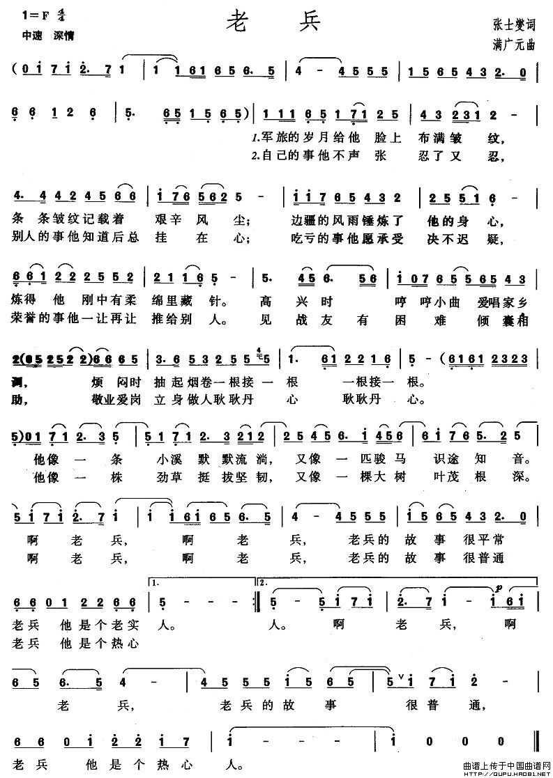 《老兵》发表于北京《歌曲》1997、11期。《音乐周报》1995年42期, [回复]