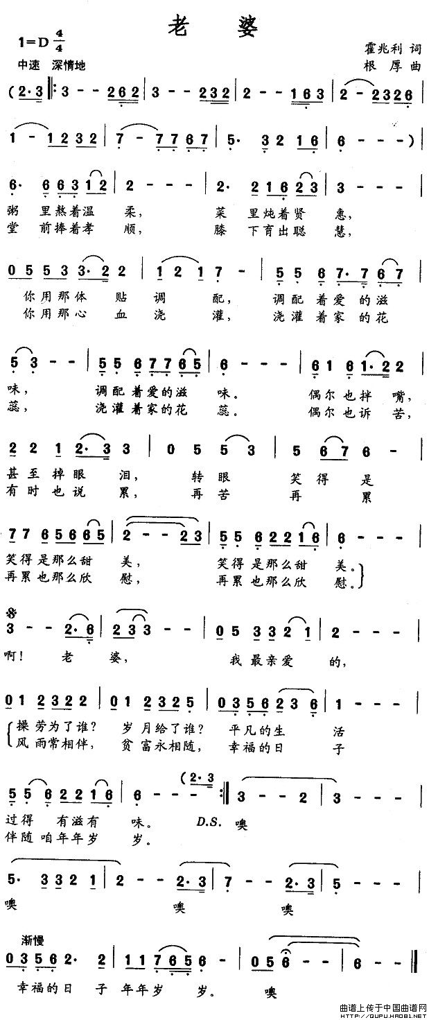 关于《老婆》曲谱的评论